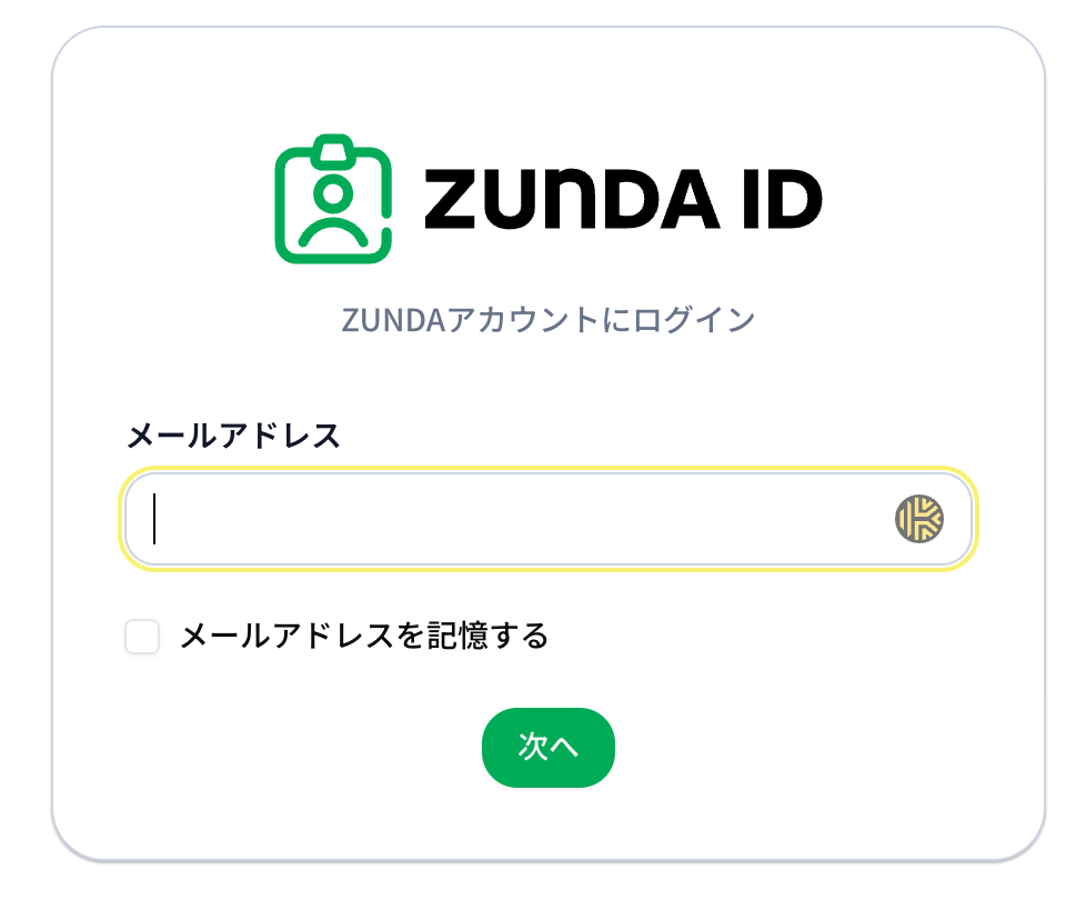 ZUNDA STORE にアクセスし、ZUNDA ID の資格情報 (メールアドレス) を入力し、ログインします。