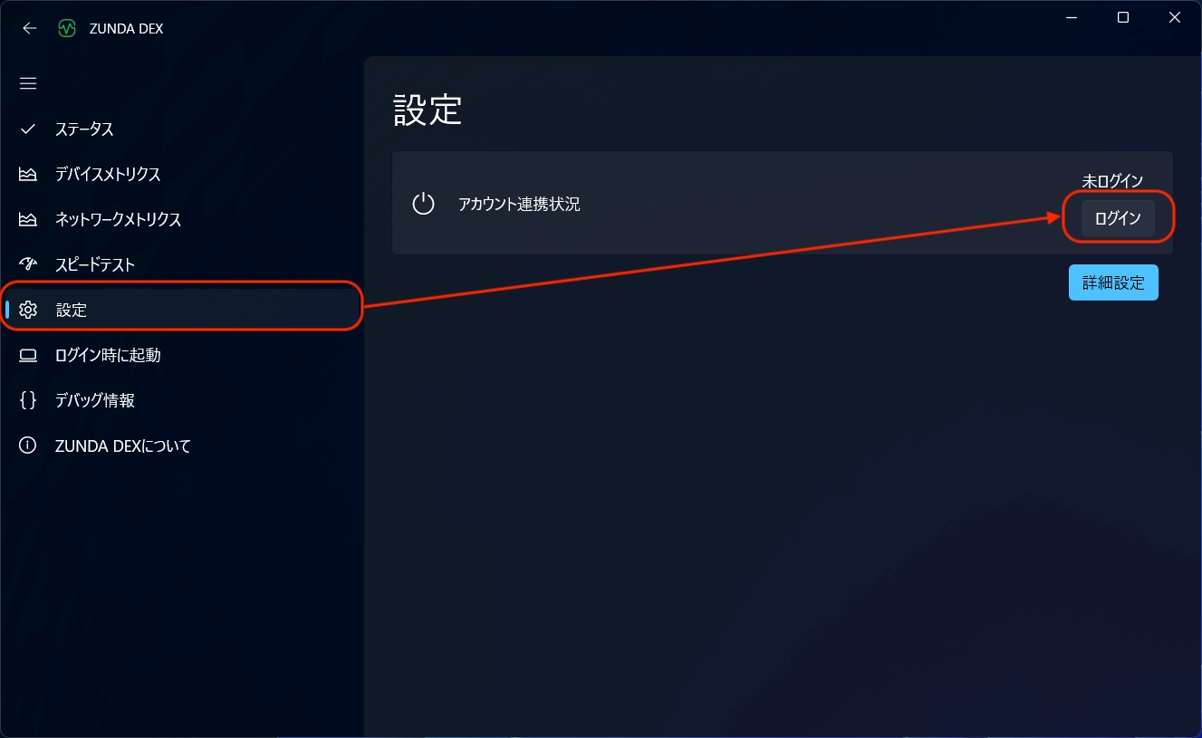 ZUNDA DEX クライアントでログインする