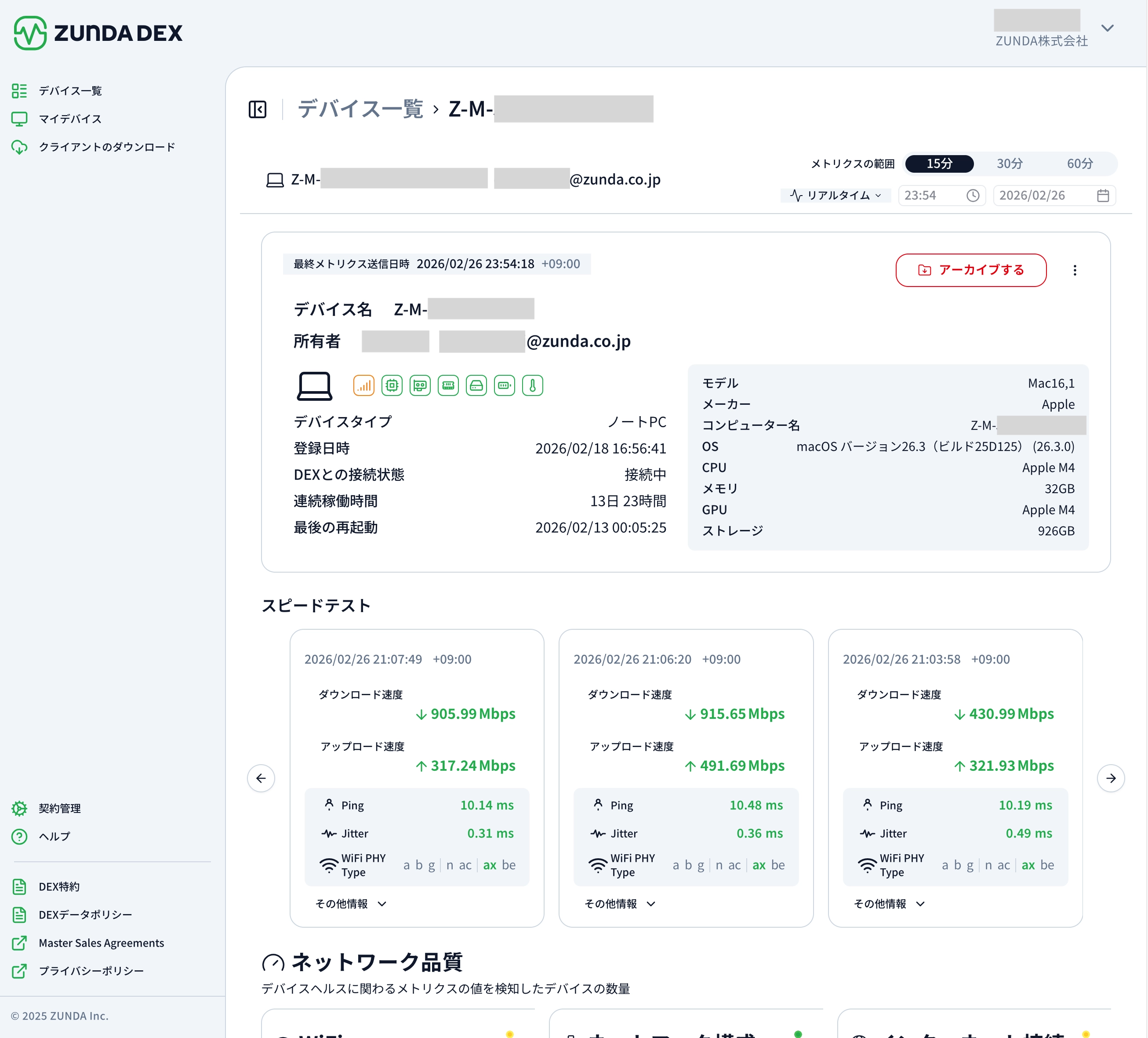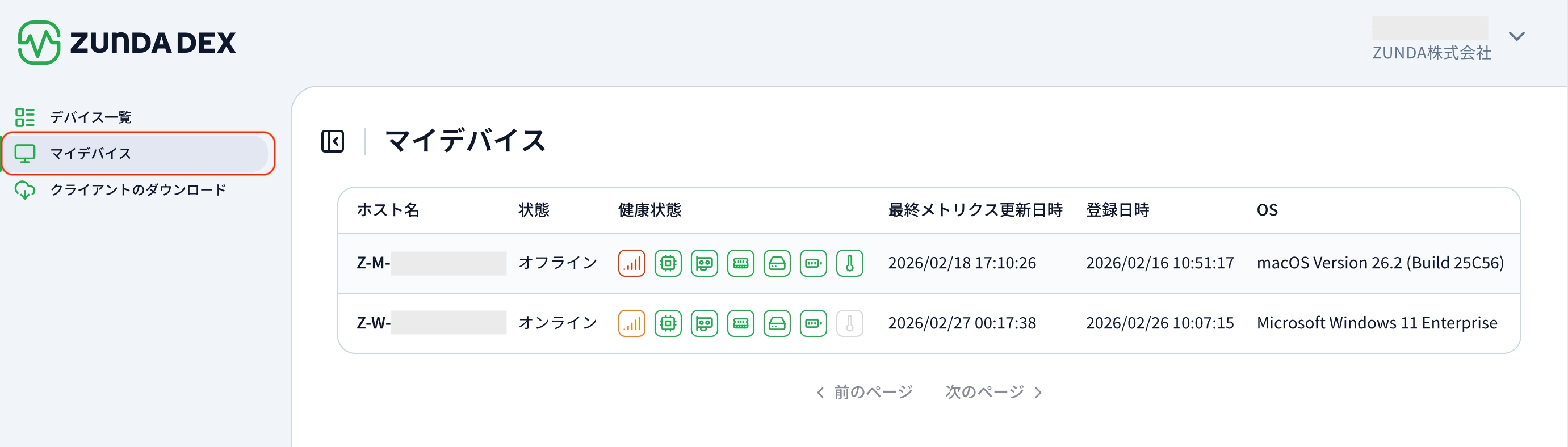 登録デバイス及びメトリクスは https://dex.zunda.co.jp 上で確認することができます。