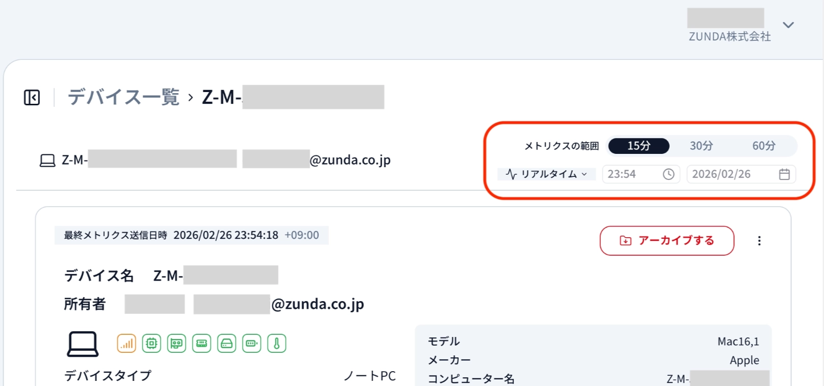 - 最終メトリクス更新日時: デバイスが最後に送ったメトリクスの日時