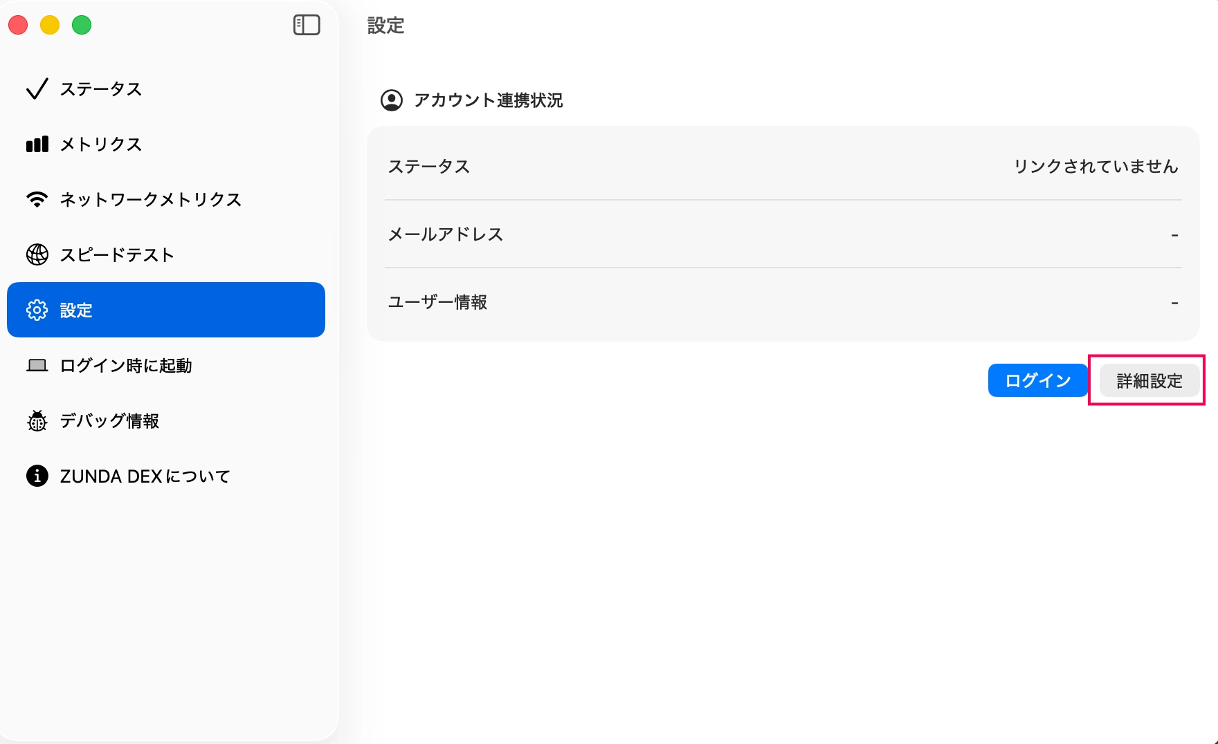 - 説明: 設定すると、メールアドレスの入力画面を省略し、ZUNDA IDに紐づくSSO(シングルサインオン)プロバイダーの認証画面へ直接遷移させることができます。macOSでは