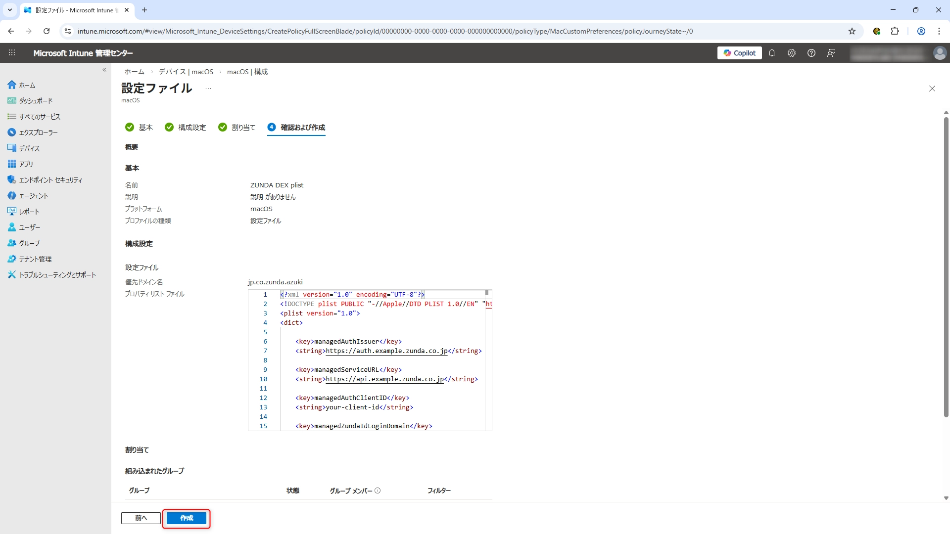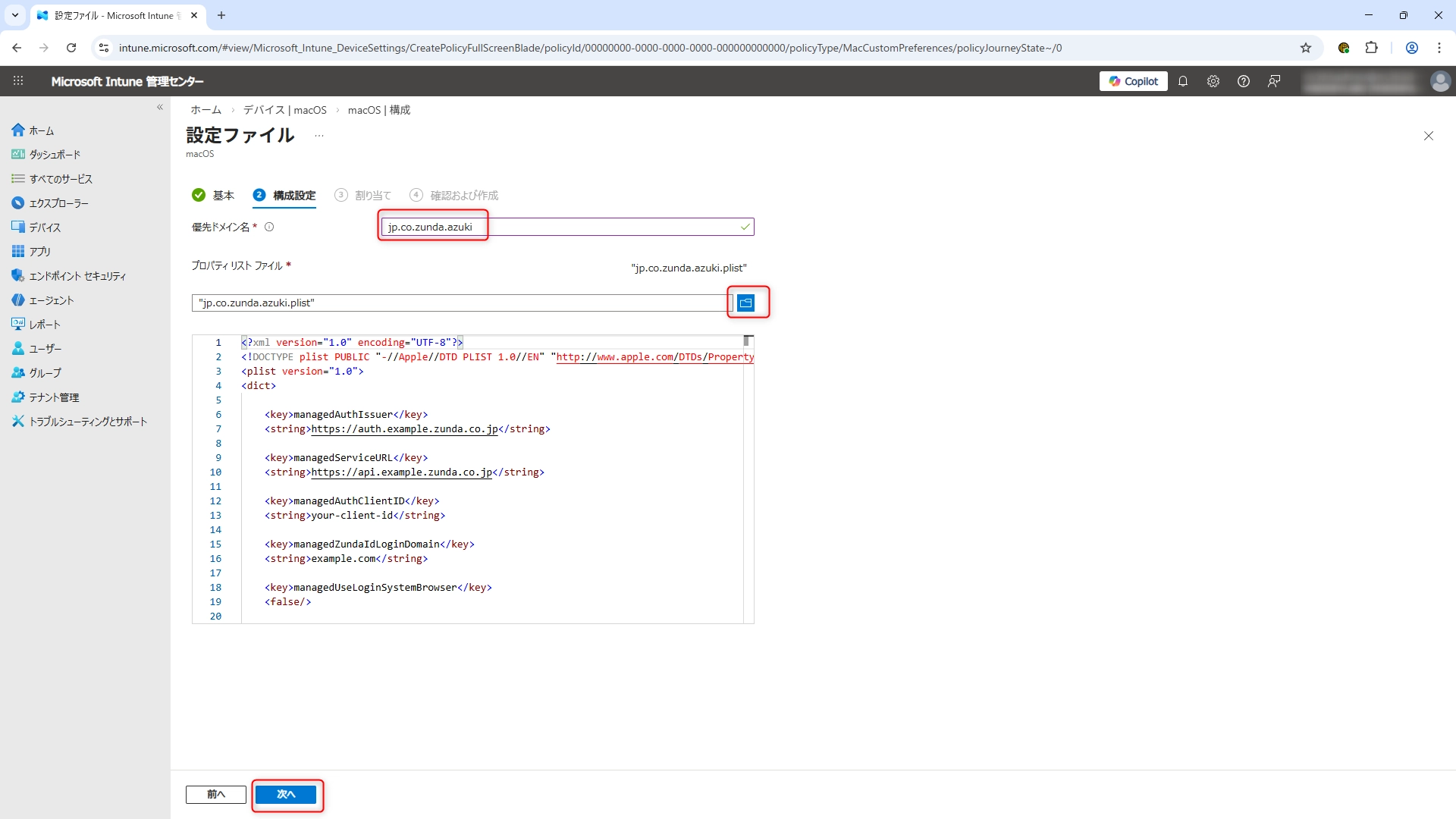 画像の例ですと、 managedZundaIdLoginDomain のみが設定されておりますが、必要があれば上記の設定も配布することが可能です。